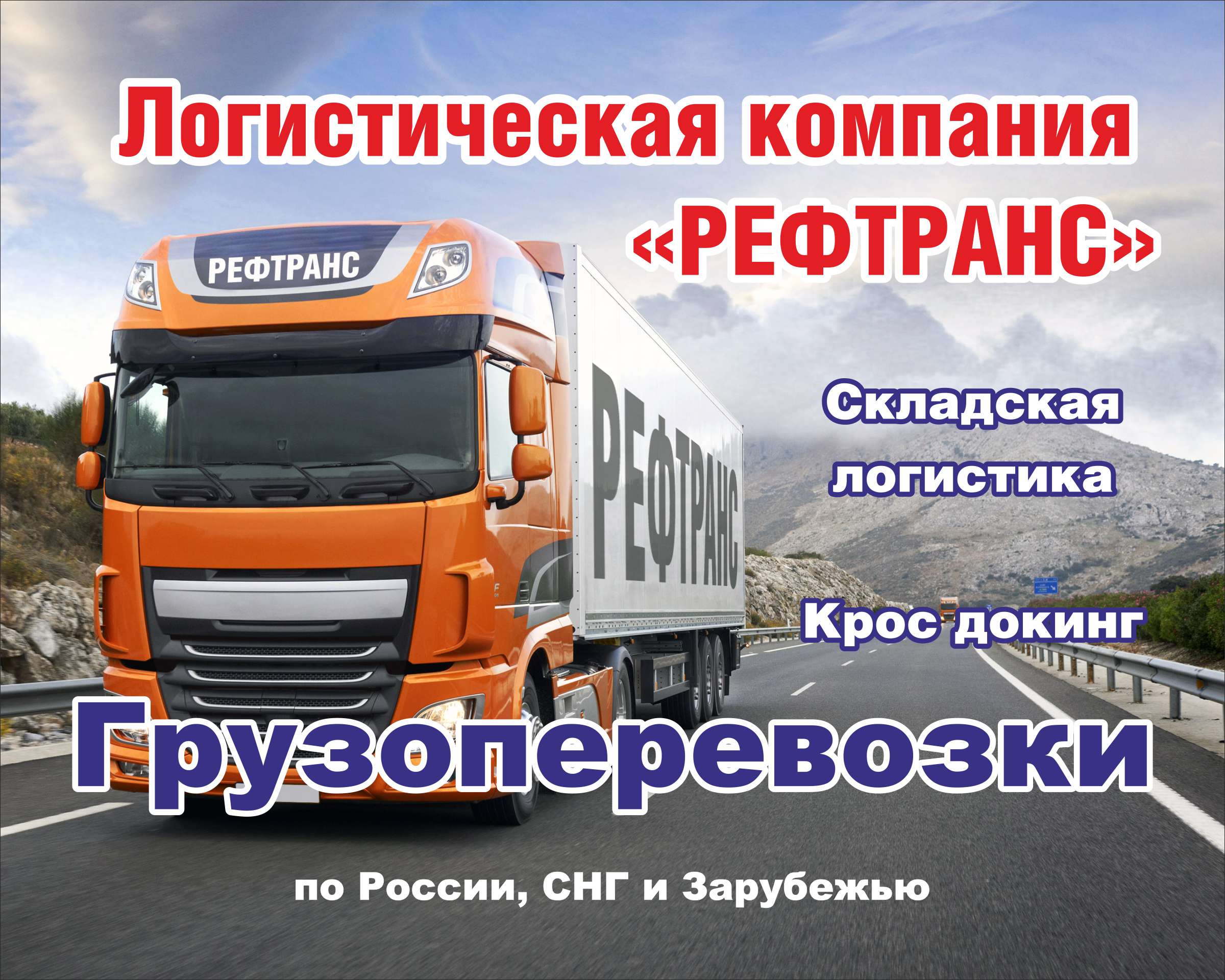Логистическая Компания «РЕФТРАНС», предлагает Вам сотрудничество в организации доставки Ваших грузов по территории Российской Федерации и странам ближнего зарубежья. Оказываем услуги по грузоперевозкам скоропортящихся товаров быстро и надежно!